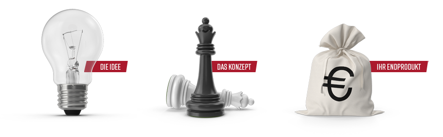 Am Anfang steht immer eine Idee, ein Produkt, ein Vorhaben. In Abstimmung mit Ihnen konzipieren wir für Sie die optimalen Maßnahmen zur Erreichung Ihrer individuellen Marketing-Ziele. Auch bei allen folgenden Schritten stehen wir Ihnen zur Seite, wir begleiten Sie zuverlässig von der Idee bis zum fertigen Produkt.
